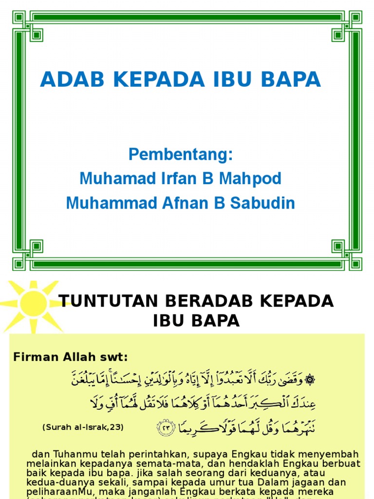 Ppt Adab Kepada Ibu Bapa Powerpoint Presentation Free Download Id 3818538